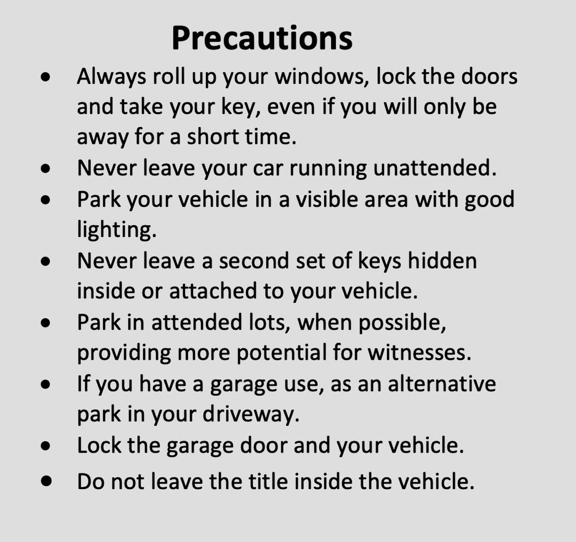 Large parking lots and neighborhoods with a lot of on-street parking can be prime targets for theft.